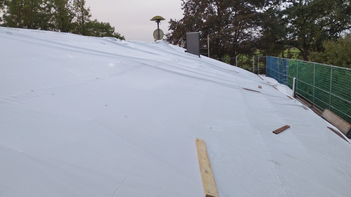 fazit: in einer nacht- und nebelaktion habe ich mit den nachbarn das komplette Dach provisorisch mit silofolie abgedeckt und so den probenraum und das wohnhaus vor wasserschäden geschützt.