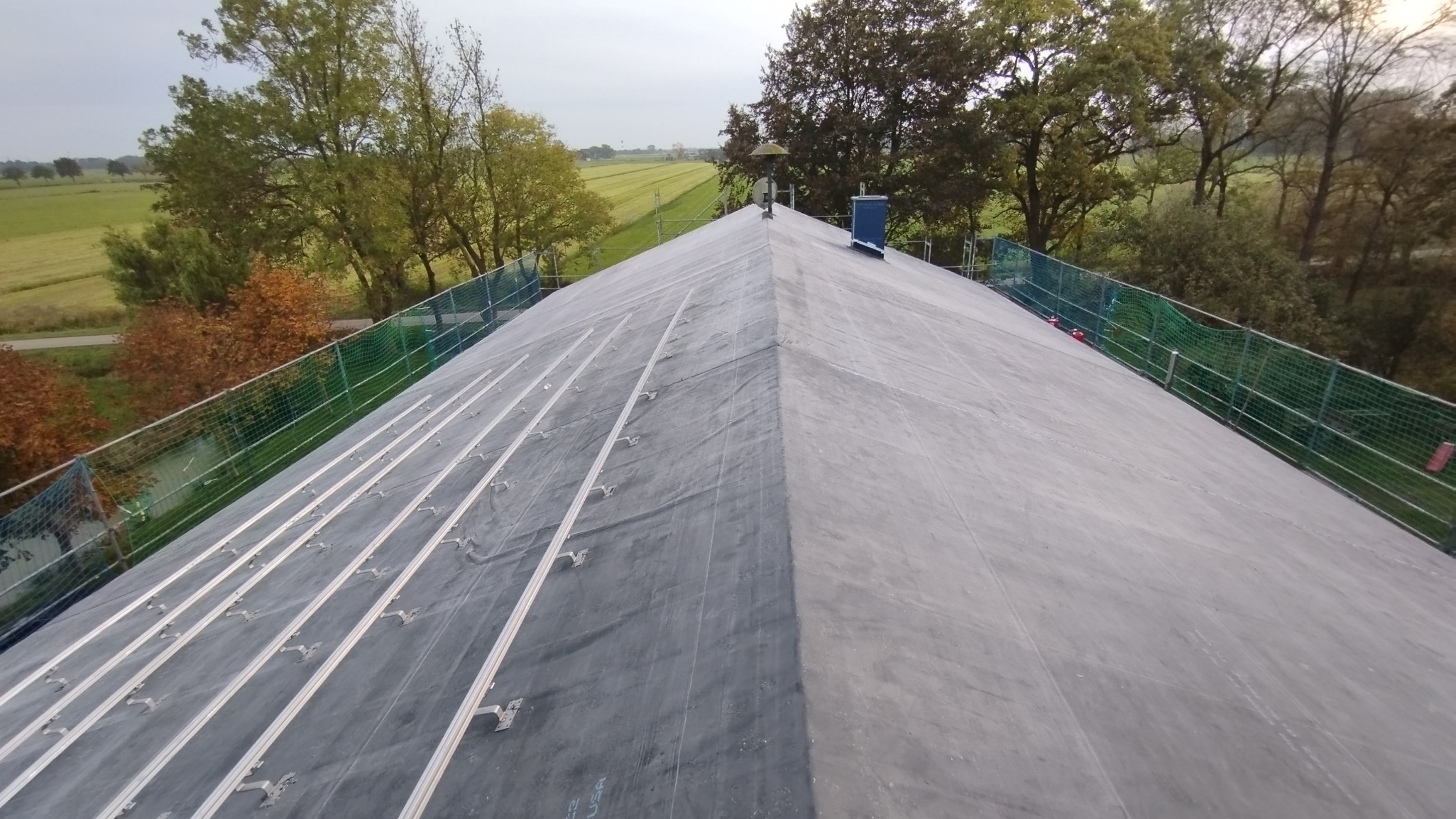 die dachoberfläche ist fertig und die schienen für die pv-anlage sind montiert - ein gutes gefühl, die eimer aus dem probenraum bei regen nicht mehr gebrauchen zu müssen.