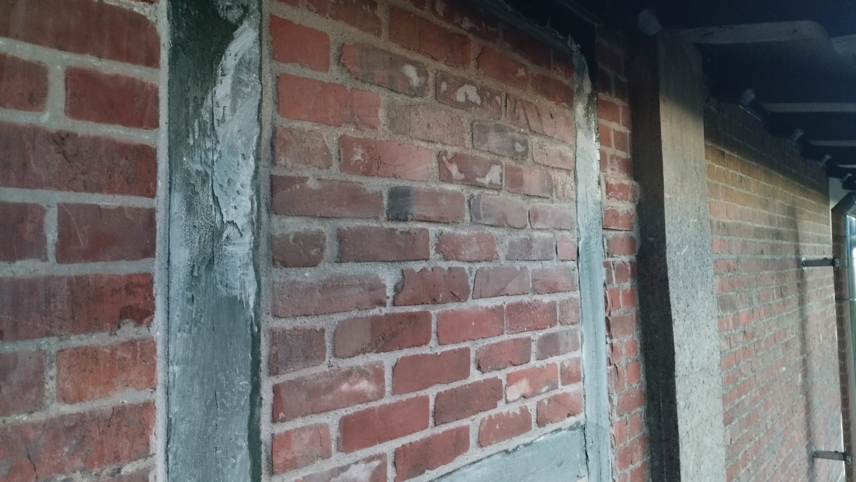hier war eins ein altes holz-fenster, das nun einem neuen, gemauerten gefach weichen muss. warum? direkt daneben kommt als zweiter fluchtweg noch eine große glastür.