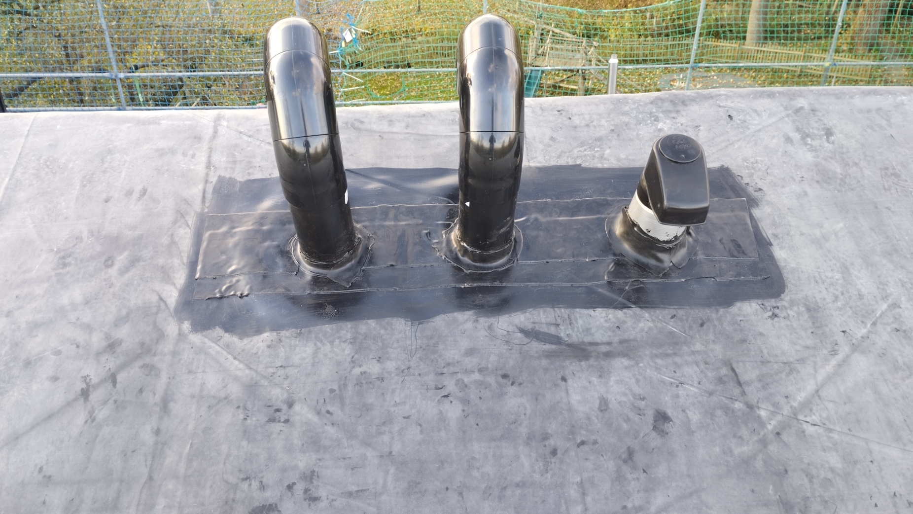 drei große löcher im dach sind nun wieder geschlossen und sorgen dafür, dass die rohre der solarthermie-anlage und die kabel der pv-anlage ins haus gelangen.