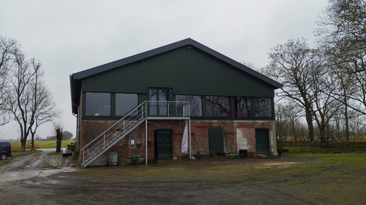 Das ist sie nun also, die Innenansicht des neuen Probenraums, große Fenster mit einem tollen Blick über die Wilstermarsch und verkleidete Gefache. Da machen Proben und Aufnehmen doch gleich doppelt Spaß.