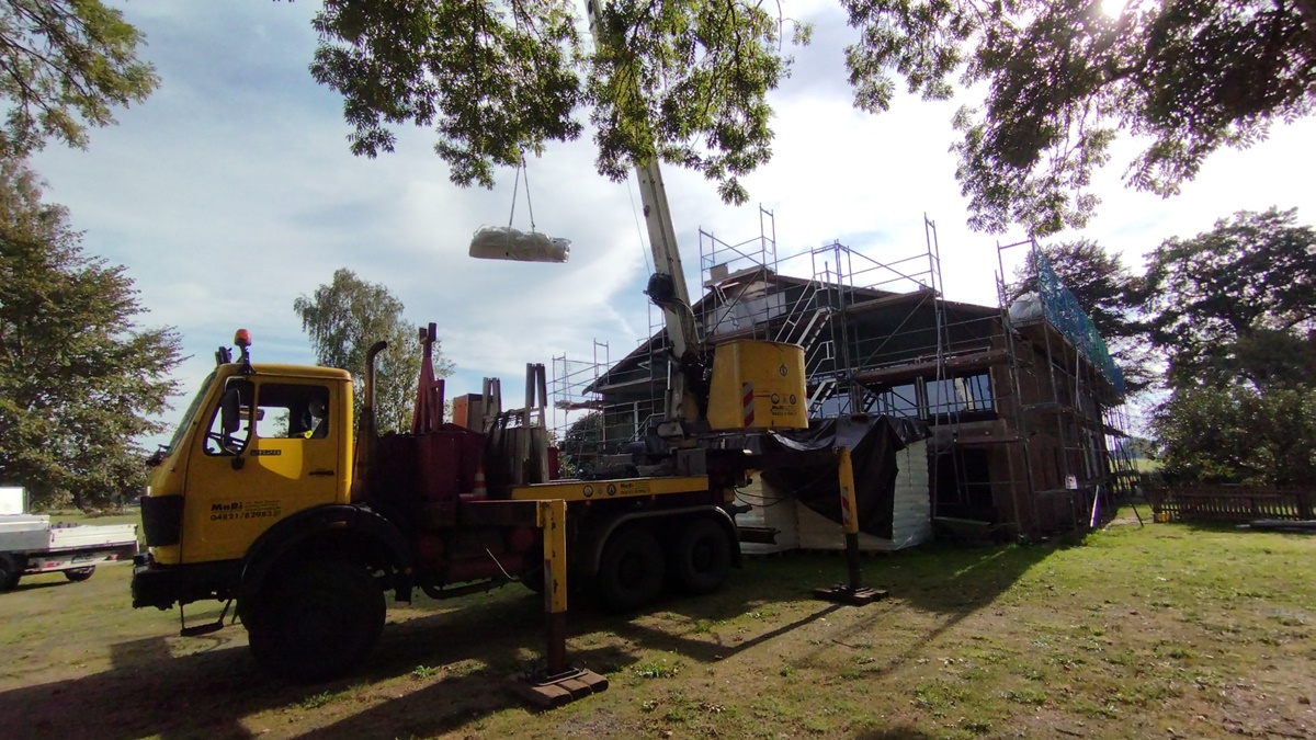 430qm dämmung sind heute auf 21 paletten geliefert worden. sie kommt aufs dach und sorgt für wohlige wärme an kalten tagen - und frisch kühle an warmen tagen.