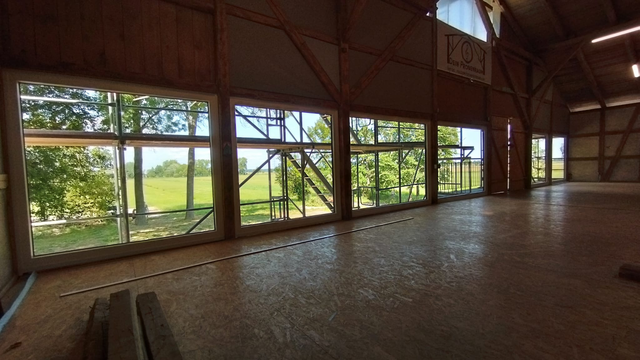 nach 2 tagen harter arbeit der mitarbeiter von fa. ossenbrüggen ist die neue fensterfront nun eingebaut. sie bringt nicht nur mehr licht in den probenraum, sondern ermöglicht auch während der proben den wunderschönen blick ins grün der wilstermarsch.