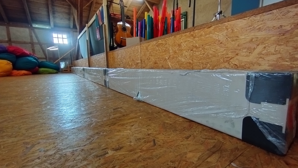 fast 12 meter heizkörper sind installiert. zur sicherheit mit einem hübschen holzrahmen umbaut und funktonieren einwandfrei - jetzt ist Dein Probenraum endlich beheizbar und auch im winter nutzbar.