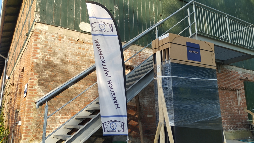 der allererste haken kann gesetzt werden - die solarthermieanlage ist geliefert und wartet nun darauf, installiert zu werden.