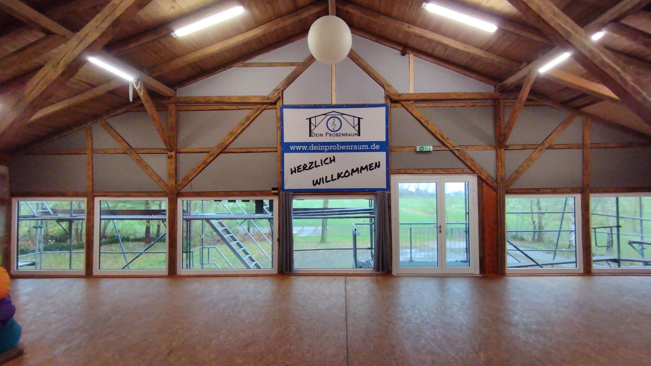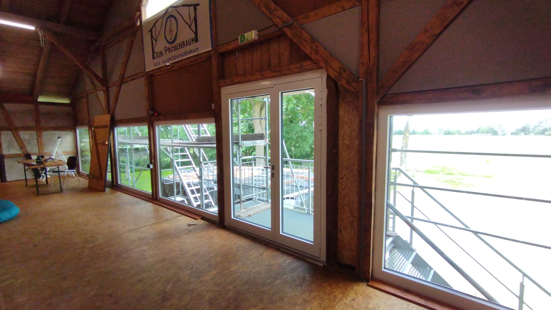 Das ist sie nun also, die Innenansicht des neuen Probenraums, große Fenster mit einem tollen Blick über die Wilstermarsch und verkleidete Gefache. Da machen Proben und Aufnehmen doch gleich doppelt Spaß.