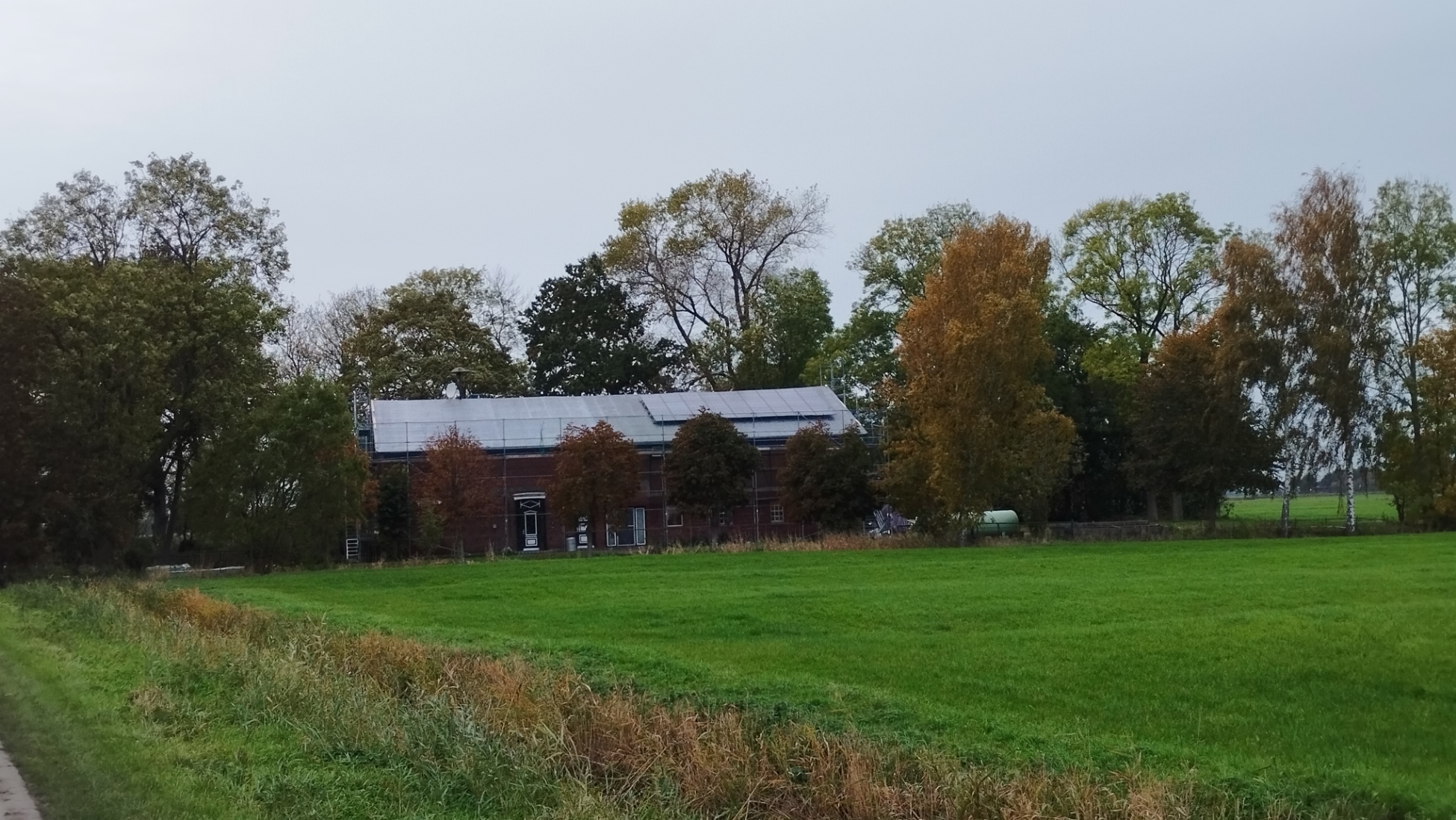 viele wochen baustop liegen hinter uns - schlechtes wetter, krankheitswelle und urlaubszeit haben den betrieben zugesetzt. nun steht aber das gerüst ums ganze haus und in wenigen tagen wird das alte dach heruntergenommen.